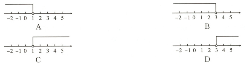4. 在数轴上表示不等式$\frac{x-1}{2}<0$的解集,正确的是 (