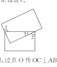 C 【解析】由图可得,$\angle1=90°+\angle3$,$\because\angle2+\angle3=90°$,$\therefore\angle2=90°-\angle3=90°-(\angle1-90°)=180°-\angle1=180°-$