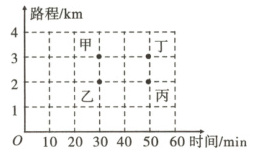 5. 甲、乙、丙、丁四个人步行的路程和所用的时间如图所示,按平均速度计算,走得最快的是 (