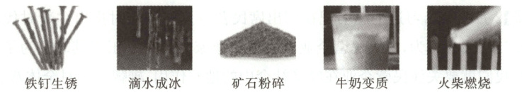 8. 新课标·跨学科试题 生活中的很多变化都是物理变化或化学变化.下面的五张卡片除图片内容不同外,其他没有区别,放置于暗箱中摇匀.从中随机抽取两张卡片,卡片内容均为化学变化的概率为 (