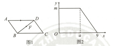 9. 如图1,平行四边形$ABCD$中,$AB=3$,$BD\perp AB$,动点$F$从点$A$出发,沿折线$ADB$以每秒1个单位长度的速度运动到点$B$.图2是点$F$运动时,$\triangle FBC$的面积$y$随时间$x$变化的图象,则$m$的值为 (