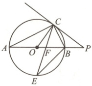 20. 如图,$AB$是$\odot O$的直径,点$C$是$\odot O$上一点,过点$C$作$\odot O$的切线与$AB$的延长线相交于点$P$,弦$CE$平分$\angle ACB$,交$AB$于点$F$,连接$BE$.