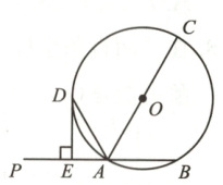 20. 如图,已知直线 $PA$ 交 $\odot O$ 于 $A$,$B$ 两点,$AC$ 是 $\odot O$ 的直径,作 $\angle PAC$ 的平分线交 $\odot O$ 于点 $D$,过 $D$ 作 $DE\perp PA$,垂足为 $E$.