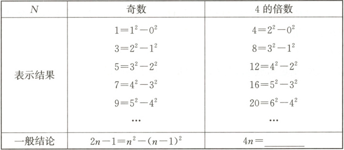 18. 数学兴趣小组开展探究活动,研究了“正整数$N$能否表示为$x^{2}-y^{2}$($x$,$y$均为自然数)”的问题.