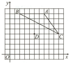 16. 如图,在由边长为$1$个单位长度的小正方形组成的网格中建立平面直角坐标系$xOy$,格点(网格线的交点)$A$,$B$,$C$,$D$的坐标分别为$(7,8)$,$(2,8)$,$(10,4)$,$(5,4)$.