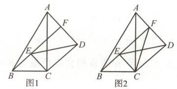(3)如图2,连接$CF$,若$\angle BAC=30°$,$AF=1$,$CF=3$,求$BF$的长.