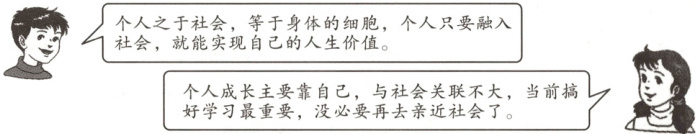 青少年处于走向社会的关键时期,围绕个人与社会的关系的话题,甲、乙两位同学发表了各自的看法。