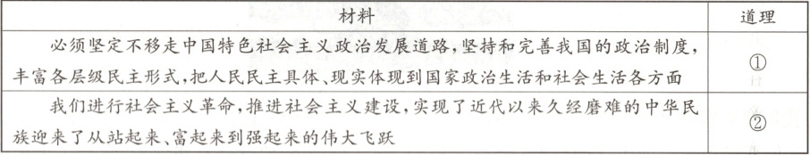 (2)①全过程人民民主是社会主义民主政治的本质属性,人民当家作主是社会主义民主政治的本质特征;人民民主是社会主义的生命。(任意答出一点即可,2分)