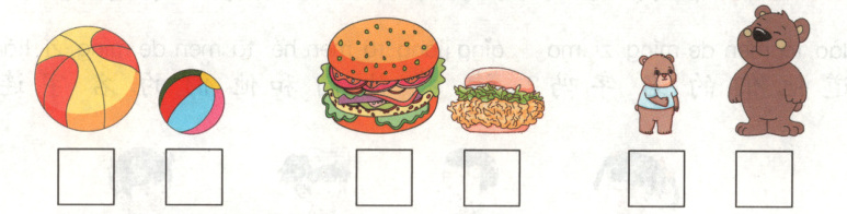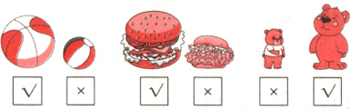 1. 比较下面的物体,在大的下面画“√”,小的下面画“×”。