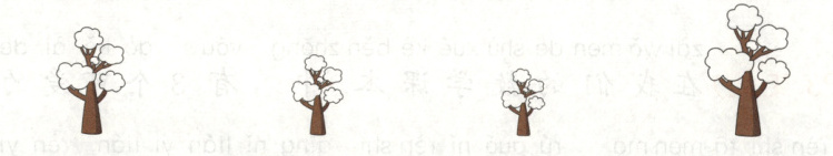 2. 把最小的树的树叶涂上绿色,把最大的树的树叶涂上黄色。