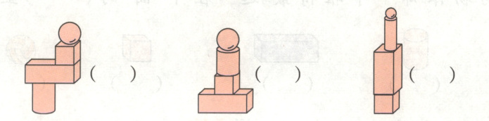 2. 空间观念·在搭得最高的图形后面画“√”,在搭得最稳的图形后面画“○”,在最容易倒的图形后面画“×”。