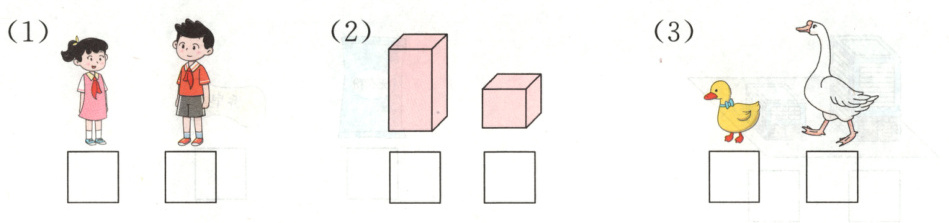 1. 在高的下面画“√”,在矮的下面画“×”。