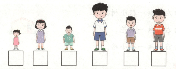 (3)比浩浩高的有两个,浩浩是谁?在$□$里画“〇”。