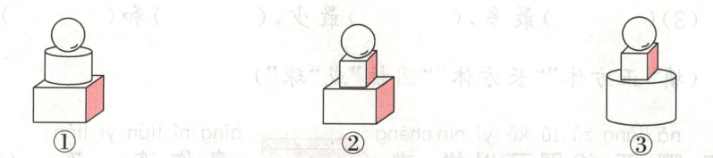 3. 先摆一个长方体,然后在长方体上面摆一个圆柱,最后在圆柱上面摆一个球。下面正确的摆放法是(