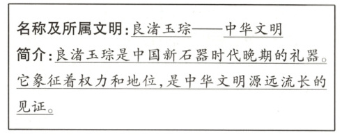 (2)请你参照示例,选择组图中的一个文物或遗址(除示例外),写一张“文物导览卡片”。(4 分)