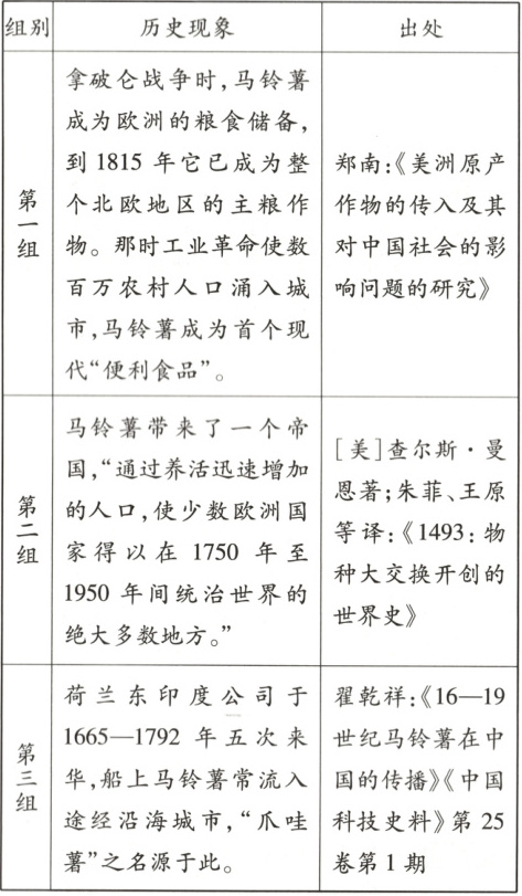 18. 新考法 [小切口·马铃薯]马铃薯源于美洲,被尊奉为“丰收之神”,见证了人类由分散走向整体的历史。阅读材料,完成下列要求。