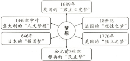 (2)选择上图中两个“梦想”,结合所学知识自拟一个观点,并加以论述。(要求:观点正确,史论结合,条理清晰。10 分)