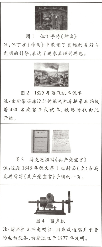 论述:1825年斯蒂芬森设计的蒸汽机车试车成功,标志着铁路时代的开始。1830年后,英国掀起投资建设铁路的狂潮,为人类的出行提供了快捷、廉价、便利的交通,推动社会进步。1877年,美国科学家爱迪生发明了用来放送唱片录音的电动设备——留声机,更好地满足了人们对音乐欣赏的需求,丰富了人们的娱乐生活,推动社会进步。1885年,德国人本茨制造出世界上第一辆汽车,以内燃机为发动机的汽车,大大缩短了世界各地间的距离,为人们的生产和生活带来了极大的便利,改变人类的社会面貌和生活方式。(6分)