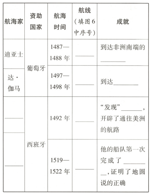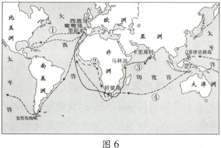 1.马可·波罗行纪 2.地圆学说 3.② 好望角 ③ 印度西海岸 哥伦布 ① 美洲大陆 麦哲伦 ④ 环球航行 4.连为一个整体