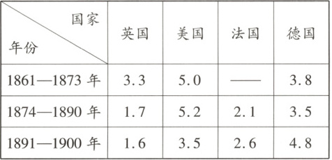 11. 以下是1861—1900年主要资本主义国家工业平均增长率(%)统计表,由此可以得出( )