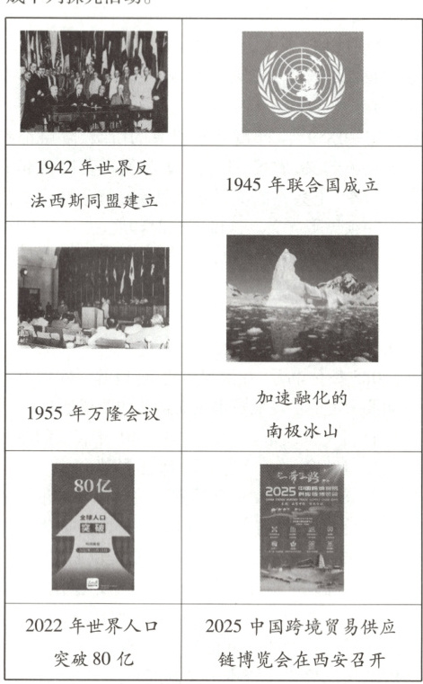 阐述:第二次世界大战后,为维护来之不易的和平,1945年,多个国家在美国旧金山签署《联合国宪章》,标志着联合国成立。联合国成立后,在维护国际和平与安全方面发挥了积极作用,使许多国家和地区避免了一些可能发生的战争。新中国成立后,积极发展与亚非国家的友好关系。1955年,万隆会议召开,面对帝国主义的阴谋破坏和各国的分歧,周恩来提出“求同存异”方针,促进了亚非国家的团结合作,提高了亚非国家和地区的民族自信。2025年,在共建“一带一路”的深远影响下,中国跨境贸易供应链博览会在西安召开,参与国相互尊重,充分沟通,促进了国际合作与发展,对当代国际关系产生积极而深远的影响。
