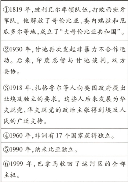 事例:1960 年,非洲有 17 个国家获得独立;1990年,纳米比亚独立。