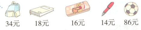(2)王老师买了2个书包和6本日记本,他付给收银员200元,应找回多少元?