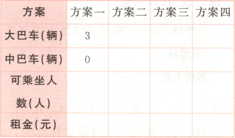 租2辆大巴车和1辆中巴车最合适,需要租金510元。