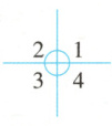 如图,如果 $∠1$ 是直角,那么 $∠2$,$∠3$ 和 $∠4$ 都是直角。(