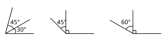 5. 下面的图都是用一副三角板拼成的,你知道这些角各是多少度吗?(先填空,再用量角器检验你的答案)