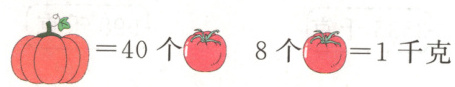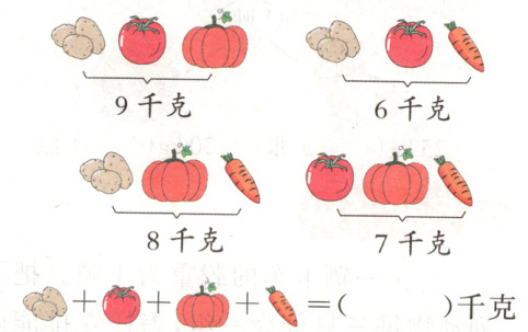 6. 学完了本节课的内容,李老师给同学们做了一个模拟实验,用水盆代替小船,用一个南瓜代替大象,用西红柿代替石头。老师先把南瓜放到水盆里,然后沿着水面在水盆上画了一条线,接着拿出南瓜,开始往水盆里放西红柿,直到放到画线的地方为止。最后,李老师开始分几次称量西红柿的质量。如果测量结果如下图,请你算一算,一个南瓜的质量是多少千克?