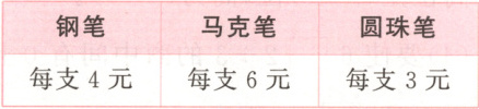 5. 某文具店钢笔、马克笔、圆珠笔的价格如下表。