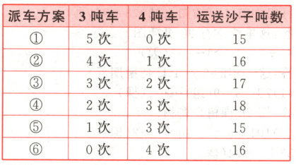 1. 把 15 吨沙子从甲地运往乙地,有两种车型可供选择。如果每次运送的车都装满,怎样安排恰好能运完这 15 吨沙子?