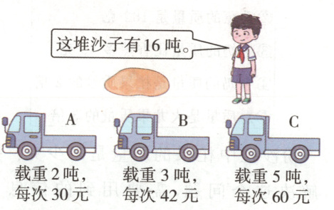 2.16÷5=3(辆)· · · · · 1(吨),租3辆C车,剩下的1吨再租1辆A车,租金为60×3+30=