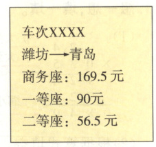 4. 生活情境·暑假期间,住在潍坊的玲玲准备和爸爸、妈妈、爷爷、奶奶一起乘动车去青岛游玩。如图是玲玲和爸爸一起查到的票价信息。