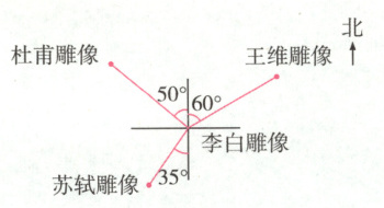 )°方向。(4)从王维雕像处出发,前往李白雕像处应向(