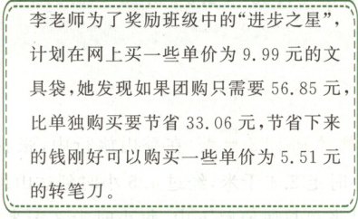 6.答案不唯一,如:节省下来的钱可以购买多少个转笔刀? 33.06÷5.51=6(个)