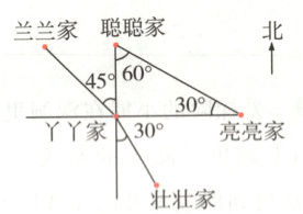 )(3)聪聪家在亮亮家的南偏东 $60^{\circ}$ 方向上。(
