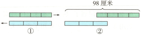7. 创新意识·有两个长方形按图①放置,现在将这两个长方形同时分别向左、右方向平移到达如图②所示的位置,速度均为2厘米/秒。请问这个平移过程需要多少时间?