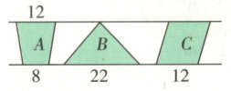 (5) 如图,三个图形 $A$、$B$、$C$ 的面积,按从大到小的顺序排列是(