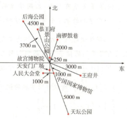 )米处。(2)景山公园大致位于故宫博物院的正北方向 250 米处,恭王府大致位于故宫博物院的北偏西 20°方向 3700 米处,南锣鼓巷大致位于故宫博物院的北偏东 20°方向 2000 米处,天坛公园大致位于故宫博物院的南偏东 20°方向 5000 米处,中国国家博物馆大致位于故宫博物院的南偏东 20°方向 1000 米处,天安门广场大致位于故宫博物院的正南方向 600 米处。