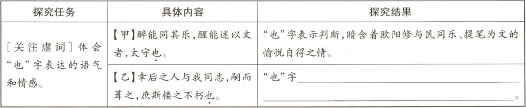 (2)于是建了两间小楼,和月波楼相通。 15.(2分)表示陈述语气,暗含着作者希望志同道合之人来修葺竹楼的愿望 16.(5分)“胜概”指“佳境”。欧阳修和王禹偁遭遇贬谪,两人寄情山水,在大自然的朝暮四季之景中寻找心灵的慰藉;两人不消沉于逆境之中,在谪居生活中自娱自乐,保持高雅的情操和高洁的志趣。(写出“胜概”含义得1分,能结合内容深入分析得4分)