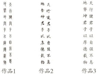 我:作品 3 更好。它是楷书,结构严整,笔画平直,可以由此引导我们③_。