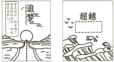 (4) 为了鼓舞初三学子奋发自强、笃行不息,宣传部的同学绘制了两幅宣传海报。请你参考海报《追梦》的文案,结合图片内容,为海报《超越》拟写符合其主题的文案。(3 分)