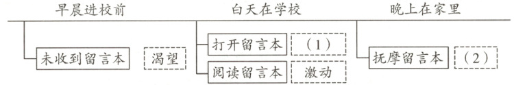 5. [提供导图支架]以留言本为线索,梳理海川的心理变化,完成下面的图表。(4分)