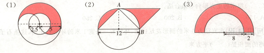 (1)(3.14×$5^{2}$-3.14×$2.5^{2}$)÷2=29.4375(平方厘米)