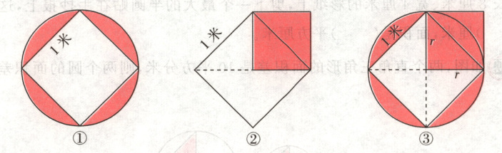 4. 创新题用圆的面积公式解决问题。如图①,一个边长为 1 米的方桌,把四边撑开,就变成了圆桌,你能求出圆桌面的面积吗? (7 分)