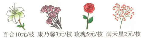 (1) 如果按4:3:2选百合、满天星和玫瑰花包装成36枝花的花束,这三种花各需要多少枝?