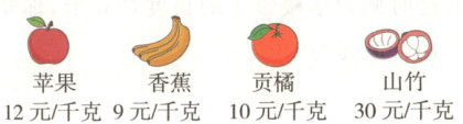 搭配3千克香蕉、2千克贡橘、1千克苹果价格最低。果篮总价:27 + 20 + 12 = 59(元)
