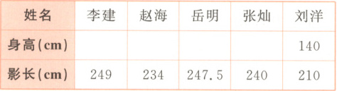 1. 生活情境·下午五名同学在操场上玩,下表记录了他们在同一时刻影子的长度。